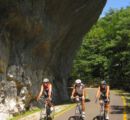 Einmal führte der Weg unsere drei unentwegten Pedaleure über Arco und Dro nach Sarche, durchs atemberaubende Sarca-Tal nach Ponte Arche und weiter über Fiave und dem Passo Balino. Steile Felslandschaften kontrastieren auf dieser Strecke mit grünen Bergwiesen und dichten Wäldern. Von dort aus weiter zum atemberaubend türkisblauen Tennosee über Tenno und Riva zurück nach Torbole. Rennradidylle am Lago di Garda.