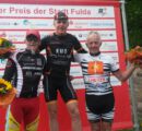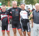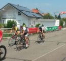 Am vergangenen Sonntag fand unser Heimrennen, das Kirrlacher Kriterium statt. Unser Kurs beträgt ziemlich genau 1000 Meter. Die Straßen sind breit und die Kurven gut zu fahren. Außerdem sind alle unsere Rennen gespickt mit vielen Prämien, was immer wieder interesannte Rennverläufe hervorruft. Als erstes mussten unsere Seniorenfahrer auf die Strecke. Jürgen Leonhard hatte bei den Senioren 4 große Konkurrenz, und noch dazu überließen es die anderen meist ihm als Lokalmatador, das Tempo hoch zu halten und Führungsarbeit zu leisten. Es reichte …
